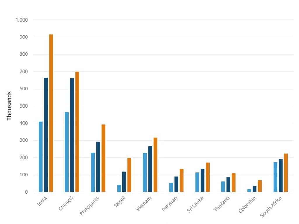 Odhadovaná rezidentní populace Austrálie podle země narození: Indie je nejrychleji rostoucí komunitou. Zdroj: ABS