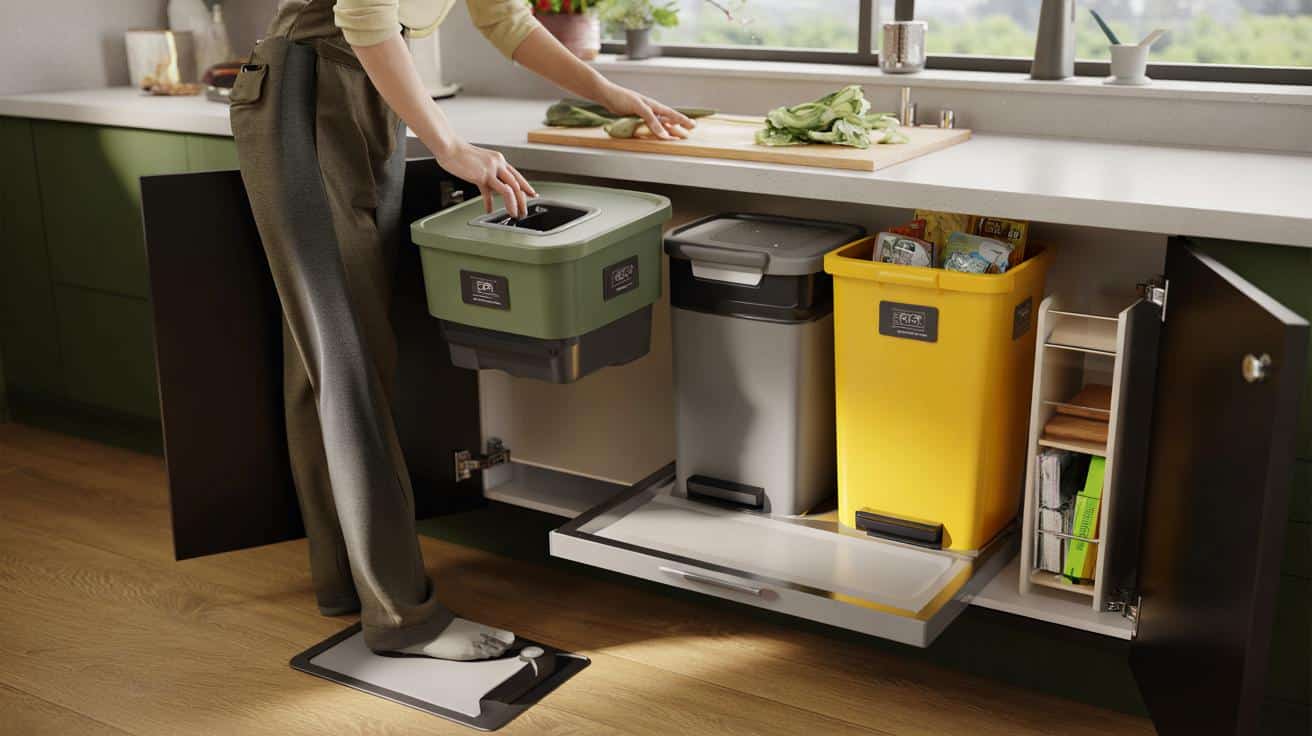 Pod kuchyňským dřezem vládne malý chaos: šustící koše, zaseklé víko a zápach, který jako by se usadil na náladě celé místnosti. Určitě znáte ten moment, kdy otevřete skříňku s mokrýma rukama a pytel odpadků se nechce dostat přes sifon. Místo hladkého chodu kuchyně se třídění odpadu mění v drobné drama. A pak najednou stojí před vámi systém se třemi nádobami na kolejnicích s nožním pedálem, který tiše zavírá víko a vše má své místo. Jedním kopnutím máte volné ruce na vaření. Dalším víko tiše zaklapne. A během okamžiku si ani nevzpomenete, jak to bývalo dřív. Tak jedno malé „cvaknutí“ změní úplně všechno.