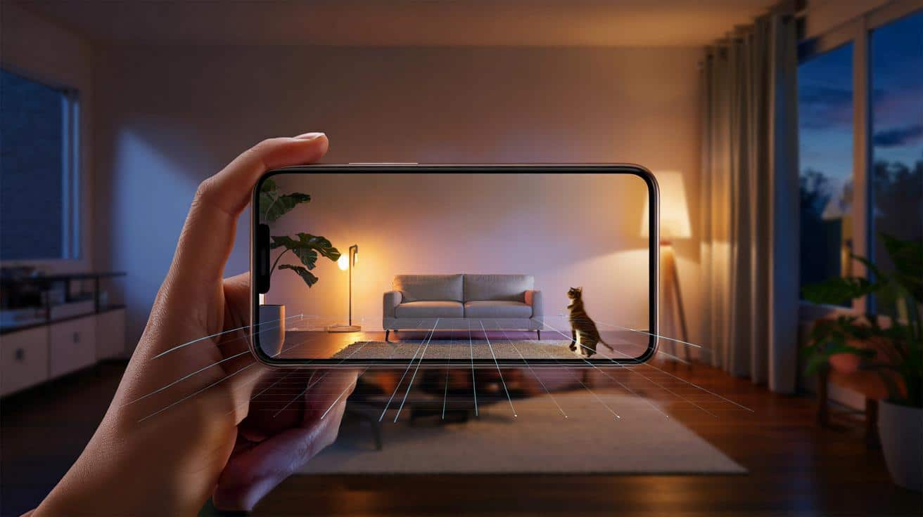 Na iPhone 12 Pro a novějších modelech Apple tuto technologii pevně integroval; řada Androidů používá podobné Time-of-Flight metody. Apple zdůrazňuje rychlejší automatické zaostření za špatného světla, protože kamera už ví, jak daleko jsou objekty. Jeden vývojář mi ukázal demo, kde před skutečnou okenní římsu umístil virtuální poličku – a když přes obraz proběhla kočka, objevila se správně před ní. Hloubka rozhoduje o rozdílu mezi trikem a realitou.