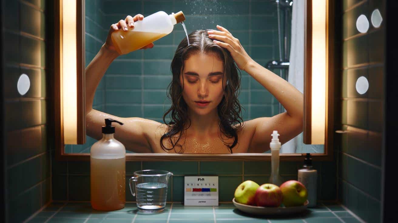 Logika je vlastně jednoduchá. Vlasy i pokožka potřebují lehce kyselé prostředí mezi pH 4,5 a 5,5 – to udržuje šupinovou vrstvu zavřenou a přirozenou ochranu pokožky neporušenou. Šampon často dočasně zvýší pH, aby odstranil tuk a nečistoty, což sice na okamžik působí čistě, ale otevře povrch vlasů. Ředěný jablečný ocet má pH 2–3 a vrací prostředí zpět do kysela, povrch vlasů je hladší a světlo se lépe odráží. Nejde o žádný trik, spíš o jemný korektiv. Použití příliš mnoho octa ale nasměruje situaci naopak a místo uklidnění může pokožku podráždit.