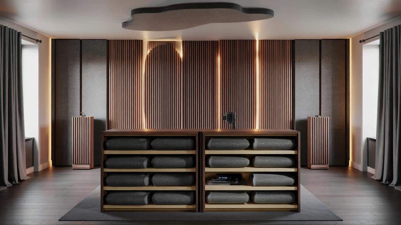 Obzvlášť za reproduktory je kombinace latí s vlnou dobrým kompromisem – tlumí odrazy, ale nezabíjejí zvukovost.
